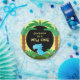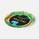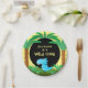 Possui um dinossauro azul giro em palmas e arbustos pré-históricos. Convites, guardanapos de papel, adesivos disponíveis nas minhas lojas. Design ©2019 Rosalind Moore, Design de Cherry Lane.