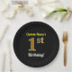 Prato De Papel Primeiro aniversario Dourado Preto, Preto + Nome P