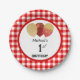 Prato De Papel Primeiro aniversario Red Gingham & Balloons