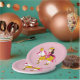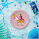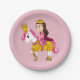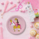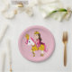 Placa de papel com ilustração de uma princesa feliz vestindo um vestido cor-de-rosa cavalgando um pônei, um belo presente para meninas e uma decoração de excelente para um berçário ou quarto de menina