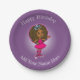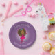 Arte bonito dos desenhos animados de uma menina do afro-americano em um vestido cor-de-rosa com uma tiara do diamante em uma placa de papel personalizada. Personalize a cor do texto e da placa para caber o tema de seu partido e uau seus convidados com este de um artigo amável.