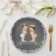 Pratos de papel lousa chá de bebê com lindo príncipe moreno e princesas bebês usando lindas coroas prateadas em um fundo de banner de lousa. Você pode adicionar texto para personalizar e pode alterar o texto no banner.