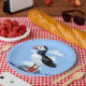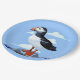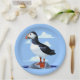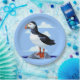 Pássaro do Atlântico Cinto, com sua típica plumagem branca e preta e bico bem colorido, parado sobre uma rocha, no oceano. Ilustração Vetor Original Copyright BluedarkArt The ChameleonArt.