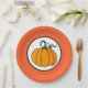 Placa de papel de festa mostrada com um impressão de abóbora fofo. Use para o Dia das Bruxas ou Ação de Graças. Personalizar este item, escolher tamanho ou forma ou comprar como está.