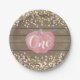Prato De Papel Pumpkin Primeiro Aniversário Pink e Douradas Placa