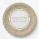 Prato De Papel Purim Feliz Hebraico Dourado Elegante