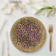 Linda e decorativa lamaçal-leopardo. A design é criada com faísca falsa, brilho e uma impressão do leopardo magenta roxa, negra e ouro amarela. Estes elementos são criados digitalmente e impressão como uma bela fotografia. Chapas de papel redondas de tamanho pequeno ou grande para os seus convidados numa celebração especial como a festa de aniversário dela.