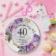Um elegante design de aniversário de casamento a qualquer ano com dois quadros de ouro e rosas roxos que podem ser personalizados com seus detalhes de aniversário.