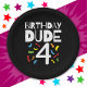 Este design de aniversário do Dude 4 é perfeito para uma festa de 4 anos para meninos que completam 4 anos. Apresenta um gráfico colorido da festa de aniversário de criança com o design Birthday Dude 4 que seu garotinho vai amar!