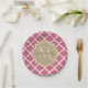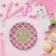 Prato De Papel Quatrefoil Rosa com Monograma e Nome Girly