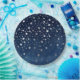 Linda noite céu azul escuro fundo celeste com estrelas prateadas em queda.