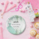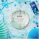 Um fundo branco. Decorado com erva-verde de eucalipto e samambaias. Personalize e adicione um nome, data. O nome é escrito com um moderno estilo escrito à mão.