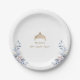 Prato De Papel Quinceañera Floral Azul Tiara Dourada Elegante