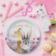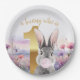 Prato De Papel Rabbit 1º aniversário soprando goma-rosa