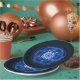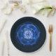 Apresenta uma representação fractal, em tom azul, da radiação de Cherenkov, resultante do armazenamento em água de barras de combustível de reatores nucleares usados. Adicione seu próprio texto. O brilho azul na água é a radiação de Cherenkov. Quando uma partícula carregada se move através de um meio a um mais alto de velocidade que a velocidade da luz nesse meio, uma radiação fraca é produzida pelo meio. Nas partículas carregadas de água, as moléculas de água são excitadas, que voltam ao seu estado normal emitindo fótons de luz azul. Como a partícula está se movendo mais rápido que a velocidade da luz na água, ela pode disparar uma cascata de fótons em fase entre si e pode interferir construtivamente para formar um brilho azul visível. Isto é algo análogo a um boom sônico na atmosfera. Esse efeito foi observado pelo cientista russo Pavel Cherenkov em 1934, quando lhe foi pedido que analisasse os efeitos da radioatividade em líquidos. Cherenkov ganhou um prêmio Nobel em 1958.