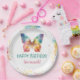 Celebrate in colorful style with these rainbow butterfly birthday plates. Featuring a vibrant watercolor butterfly with soft pastel rainbow wings and delicate paint splashes around the edge, this design brings a whimsical and joyful touch to your party table. Perfect for a girl’s birthday, butterfly-themed party, spring celebration, or garden event. Personalize with your child’s name to create a coordinated look that matches your invitations, welcome sign, and party décor. Beautiful, bright, and photo-ready for your dessert table setup.