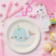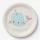 Prato De Papel Rainbow Narwhal Kawaii Padrão Pastel Nome Azul