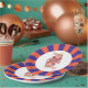 Conjunto de oito placas de papel de 9 polegadas com a imagem de uma carta de jogo da Rainha dos Corações, emoldurada com uma explosão de sol laranja e roxa. Veja as portas copos de arenito e papel correspondentes. Veja toda a coleção de Wonderland Plate na COMIDA/BEV| Seção Pratos.