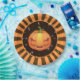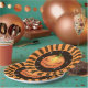 Chapas de Dia das Bruxas com raios preto e laranja e um jack o'lantern.