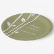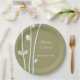Prato de papel Ramos Brancos Folhados com três ramos brancos elegantes com folhas brancas contra um fundo verde oliva. © Manhã 6