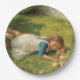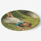 Prato De Papel Rapariga Brincando com Pintinhos (Galinha e Galinh