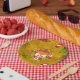 Uma raposa de desenho animado sentada em uma coroa de Natal, cercada por sagras e doces para adicionar um toque de adorável capricho ao seu Natal este ano.