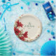 Um design festivo e aconchegante, com flores arrojadas de amarilis, folhas de ouro, e acentos de morango que enquadram suas fotos da família. Perfeito para compartilhar desejos quentes de feriado num estilo rústico, mas elegante.