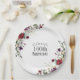Parte de um conjunto coordenado de produtos de festa de aniversário que comemora o centésimo aniversário, homenageie alguém especial com esta linda placa de festa de aniversário floral de aquarela. Incorporado com belos buquês florais em lados opostos, na combinação de cor na moda de vermelho-burguês, rosa-pincel, roxo-ameixa e pêssego com um verde sumptuoso espalhado por todo o lado, ele faz uma escolha maravilhosa para comemorações do médio ao verão, para cair e durante os meses de inverno. Personalize o modelo de texto com o nome de convidado de honra. Todo o texto pode ser editado, para que você possa usar este item para aniversários em qualquer idade! Essas placas estão disponíveis em 2 tamanhos: mostradas aqui com 9 polegadas de diâmetro, elas também vêm com 7 polegadas de diâmetro.