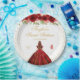 Esta elegante e glamourosa e doce placa apresenta uma bela princesa com cabelo vermelho-marrom e pele clara em um vestido de bola vermelha. O texto combina o script manuscrito e as fontes sans serif modernas para um aspecto elegante e sofisticado. Os arranjos florais, borboletas e confete de ouro criam a mistura perfeita de rústicos e quicos. Gráficos por www.etsy.com/uk/shop/SunflowerDayLove