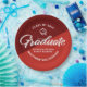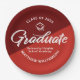 Be proud, rejoice and showcase this milestone of your favorite grad! Celebrate with these simple, modern yet retro, minimal custom paper plates. Bold, graphic, white handwritten script calligraphy, sans serif typography and a white hand drawn grad cap icon overlay both a dusty and brick red background. Personalize the custom text with your grad’s name and address. Personalize the custom text with your graduate’s name, class year and school or special message. Available in 2 sizes: 7” or 9”, round or square. Matching invites, thank you cards, hand fans, banners, yard signs and other graduation goodies are also available in this retro and trendy collection. Guaranteed to add stylish fun to their special party!