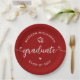 Be proud, rejoice and showcase this milestone of your favorite grad! Celebrate with these simple, modern, bold custom paper plates. Fun white handwritten calligraphy script with cute, playful hearts and a graduation cap icon overlay a brick red background. Personalize the custom text with your graduate’s name and class year or special message. Available in 2 sizes: 7” or 9”, round or square. Matching invites, thank you cards, hand fans, banners, yard signs and other graduation goodies are also available in this trendy and playful collection. Guaranteed to add stylish fun to their special party!