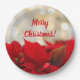 Prato De Papel Red Poinsettia White Dourado Bokee Feliz Natal