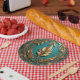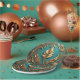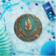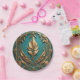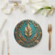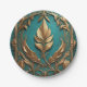 Lindas folhas douradas contra um fundo azul-turquesa cobrem este prato de papel redondo de 7".