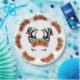 As renas festivas adormecidas com Enfeites de natal e sagradas são acentuadas por poinsetos vermelhos brilhantes e folhas verdes. A design apresenta elementos divertidos que evocam uma sensação de alegria de feriado.