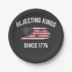 Prato De Papel Rejeitando Reis desde 1776 4 de julho