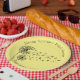 Uma bela placa de papel amarela pastel com uma mensagem personalizada e um dandelion desejando relógio com borboletas. Excelente para Chás de panela.