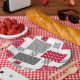 retalhamento de bolinhas vermelha de cinza sobre fundo branco