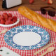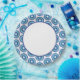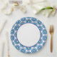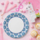 Padrão uniforme de elementos florais azuis sobre fundo branco