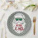 Retro Black White Checkered Santa Claus Christmas Paper Plates.