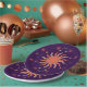 Um grande coral retrô e um sol bronzeado são cercados por luas e sotaques menores para criar uma vibração Boho muito moderna.