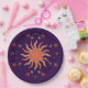 Prato De Papel Retro Boho Coral e Púrpura Sol e Lua