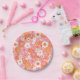 Prato De Papel Retro Boho Rosa Laranja Floral Flores Fofas