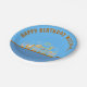Adorable personalized birthday party plate featuring a sweet animal train illustration on a soft blue background. The design showcases cute jungle and woodland animals riding together in colorful train cars, with “Happy Birthday Michael” displayed in playful lettering across the top. Perfect for a child’s birthday celebration, this charming plate adds a fun, personalized touch to party tables and makes a memorable keepsake for kids.