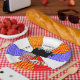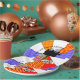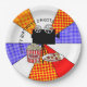 Placas de papel de festa de aniversário com tema, vermelho, azul, amarelo, branco, vermelho e neutro do gênero em um estilo de arte digital desenhado à mão.