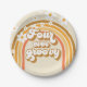 Prato De Papel Retro Rainbow Four Ever Groovy 4th Birthday