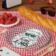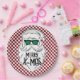 Prato De Papel Retro Red Pink Checkered Santa Claus Christmas
