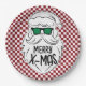 Retro Red Pink Checkered Santa Claus Christmas Paper Plates.