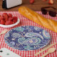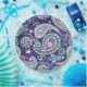A fun, retro hand drawn space theme print with rockets zooming around moons and stars
