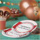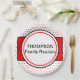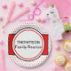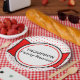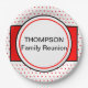 Mercadorias de papel da Associação Familiar Personalizada. Personalize com o sobrenome da sua família. Bolinhas vermelhas divertidas em fundo branco com a aparência de placas duplas e guardanapos vermelhos no centro de placas de papel descartáveis para CHURRASCO de reagrupamento familiar ou diversão piquenique. Clique para personalizar para aumentar/diminuir o nome da família. Um padrão de verão alegre para se juntar a família e amigos. Arte original e texto dizendo design © TamiraZDesign.