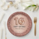 Prato De Papel Rico Script Rosa Glitter Feliz 16º Aniversário
